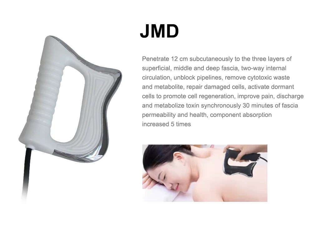Fabricada en ABS y TPR de alta resistencia, cuenta con certificación CE y está disponible en diferentes tamaños (S, M y L) para adaptarse a distintas necesidades. Su principio de funcionamiento regula la actividad de los iones celulares, favoreciendo la regeneración natural de las células y proporcionando un efecto estético eficaz de manera segura e indolora.