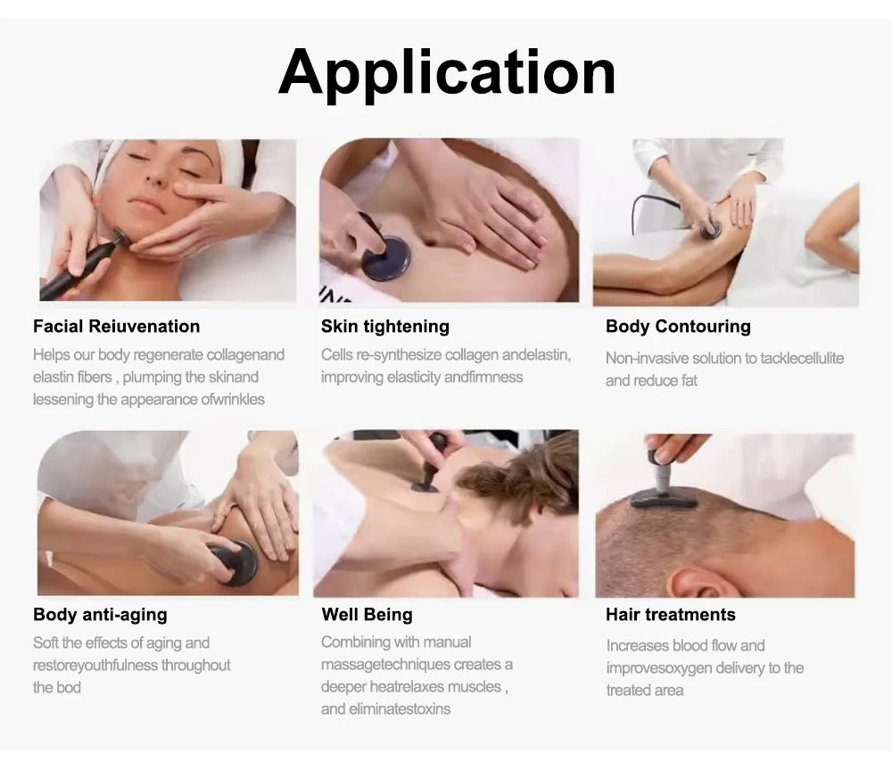 La AOKO 448K CET RET puede aplicarse en diversas zonas del cuerpo: rostro y ojos para reducir arrugas, cuero cabelludo para mejorar la salud capilar, abdomen y cintura para pérdida de peso, piernas para aliviar la fatiga, así como en espalda, cuello y hombros para reducir el dolor muscular. También contribuye a mejorar la elasticidad de la piel y a definir curvas en zonas como senos y caderas.