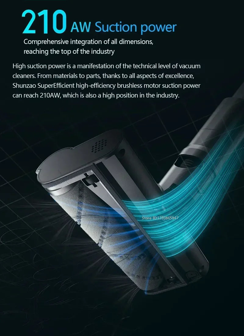 La Aspiradora SHUNZAO Z15 Pro es una solución avanzada para la limpieza del hogar, diseñada para ofrecer succión potente de 210AW y un rendimiento superior tanto en modo seco como húmedo. Con su motor de 550W y una succión al vacío de 30000Pa, elimina eficazmente polvo, suciedad y líquidos, garantizando un entorno más limpio y saludable.