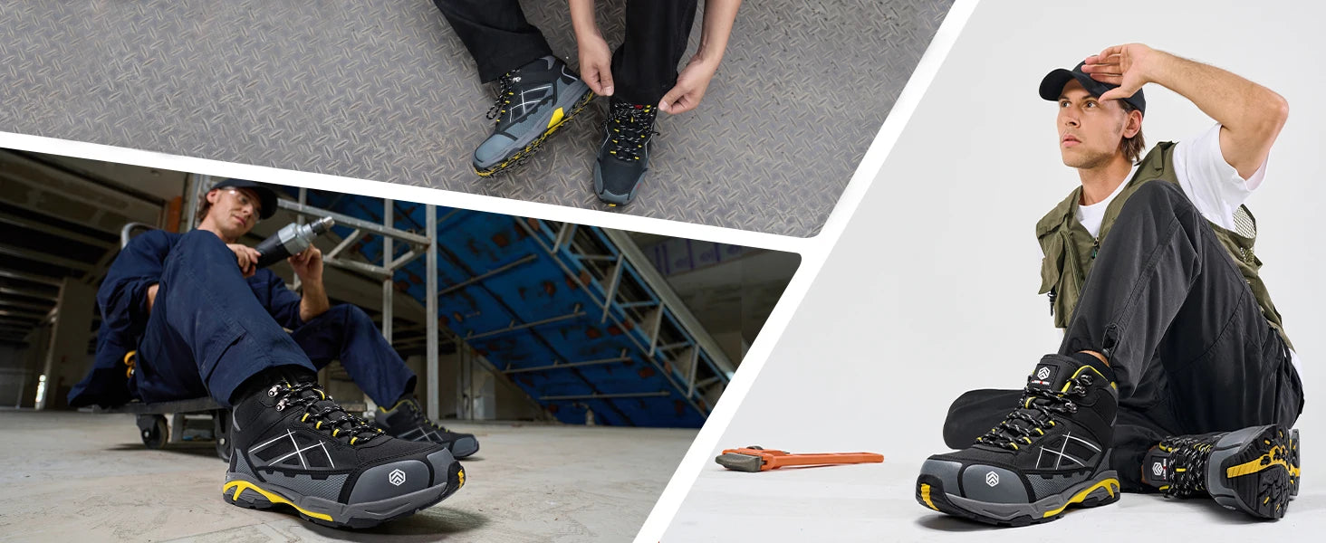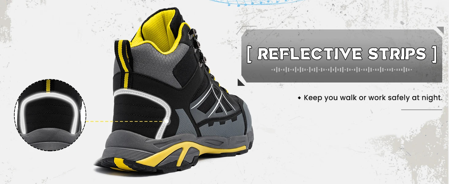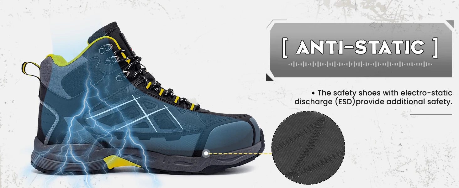 Su suela EVA antideslizante garantiza estabilidad en todo tipo de superficies, mientras que la protección antipinchazos y antiestática asegura un rendimiento confiable en condiciones de riesgo. Con un tacón bajo de 1-3 cm y diseño ergonómico, estas botas permiten libertad de movimiento y confort prolongado.