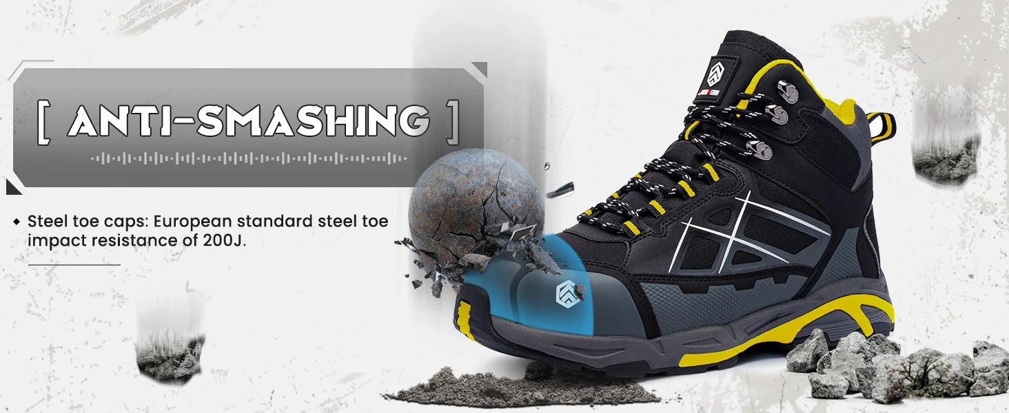 Los Zapatos de Trabajo LARNMERN para hombre son unas botas de seguridad profesionales diseñadas para ofrecer protección avanzada y comodidad diaria. Con puntera metálica de acero, protegen eficazmente frente a golpes y caídas de objetos pesados, siendo ideales para construcción, almacenes y talleres.