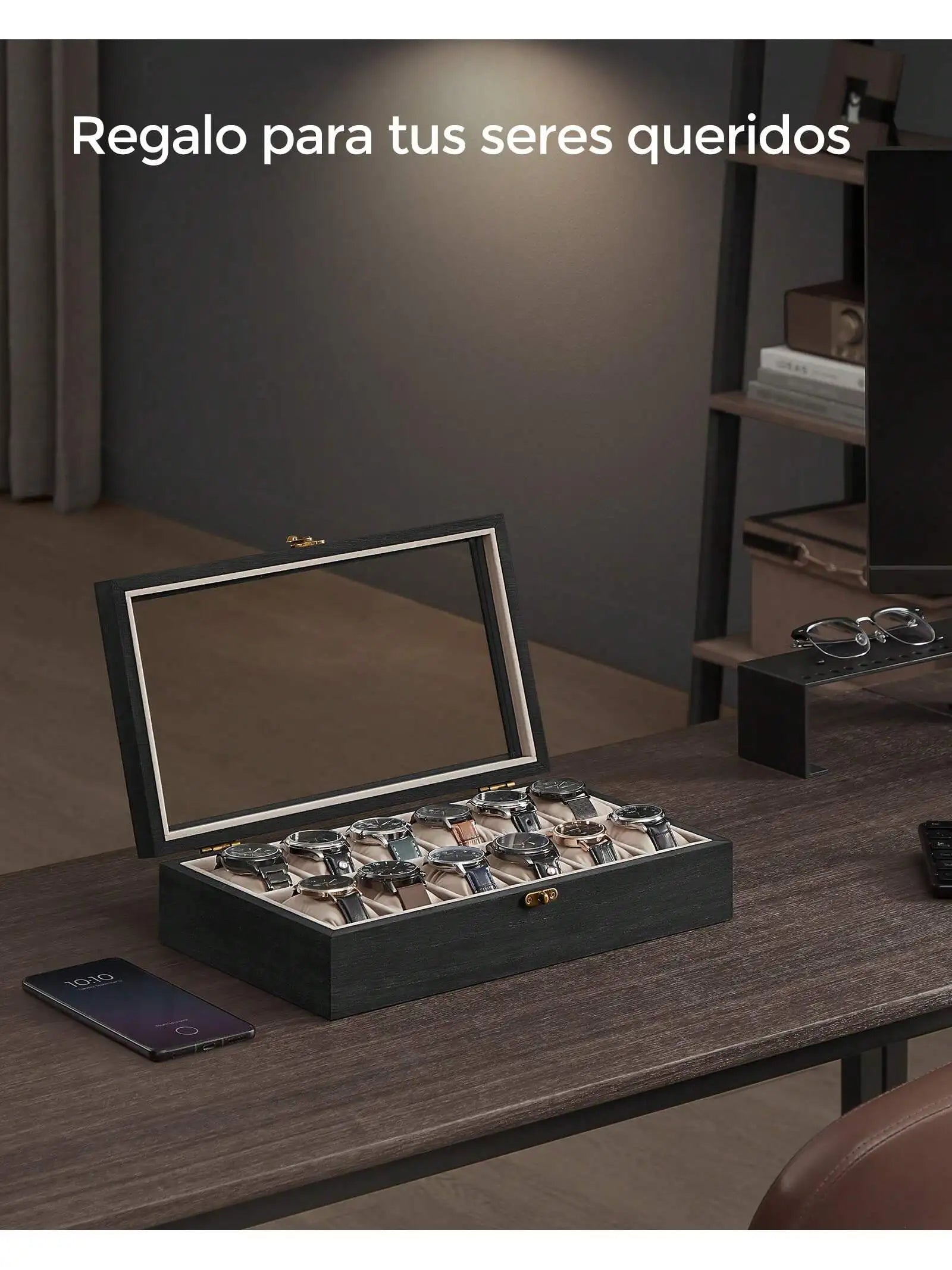 Gracias a su diseño multifuncional y resistente, esta caja no solo protege del polvo, sino que también facilita la elección del reloj adecuado sin necesidad de abrirla. Es una opción ideal como regalo elegante y funcional para cumpleaños, aniversarios o celebraciones especiales.
