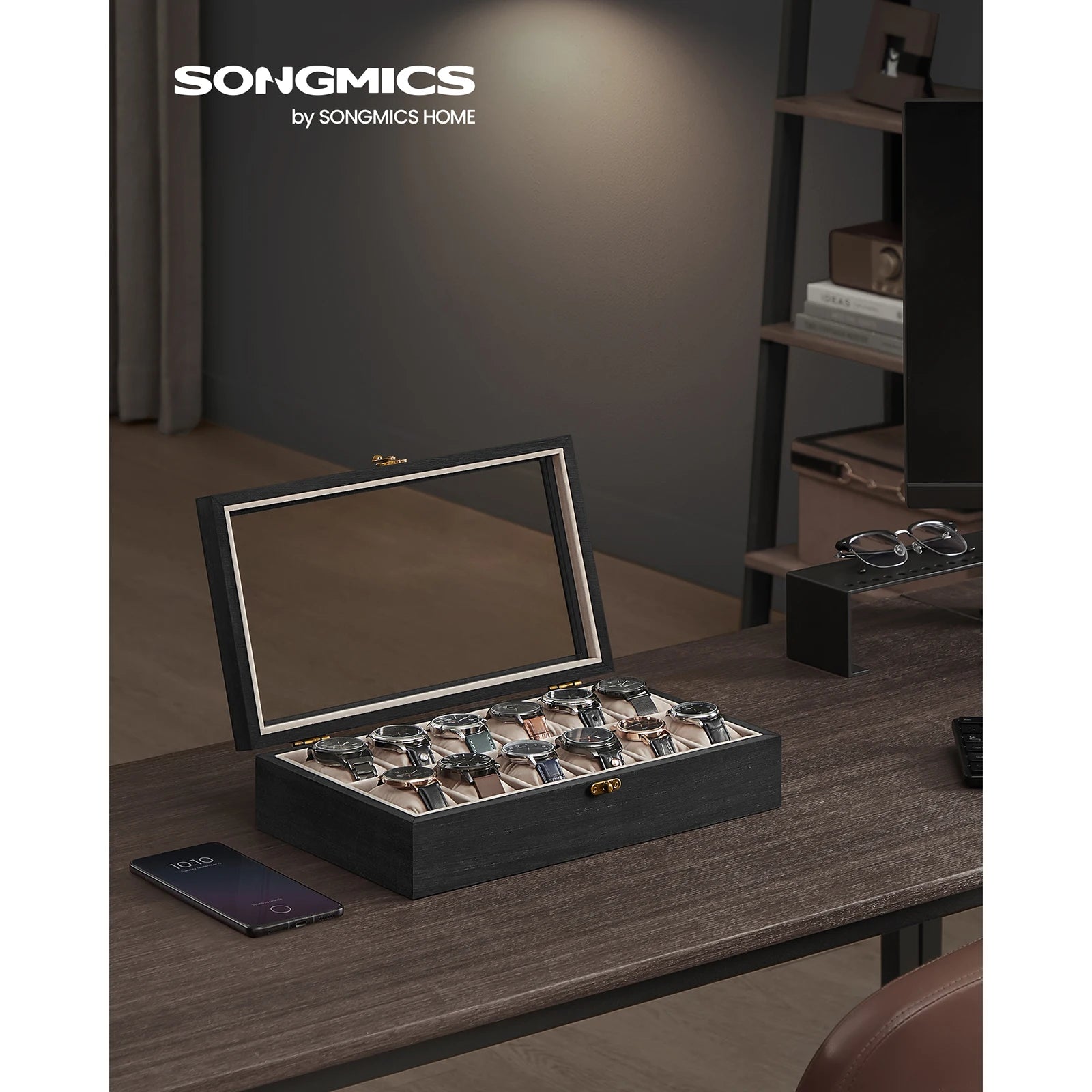 La SONGMICS caja de relojes 12 ranuras es la combinación perfecta de estética, durabilidad y practicidad, pensada para los amantes de los relojes que buscan un accesorio de calidad superior.