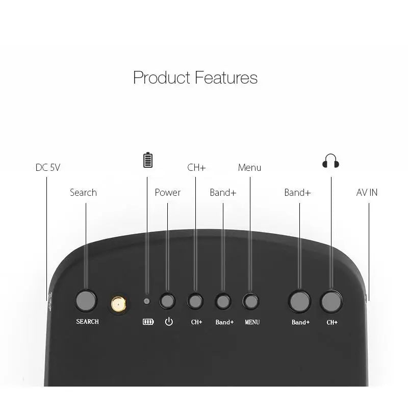 Estas gafas cuentan con un receptor integrado de 40 canales 5,8 GHz, incluyendo Raceband, que garantiza una conexión estable y sensible. La función de auto búsqueda avanzada facilita la detección de la frecuencia activa, optimizando el rendimiento en cada vuelo.