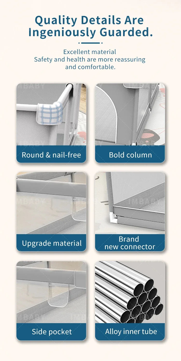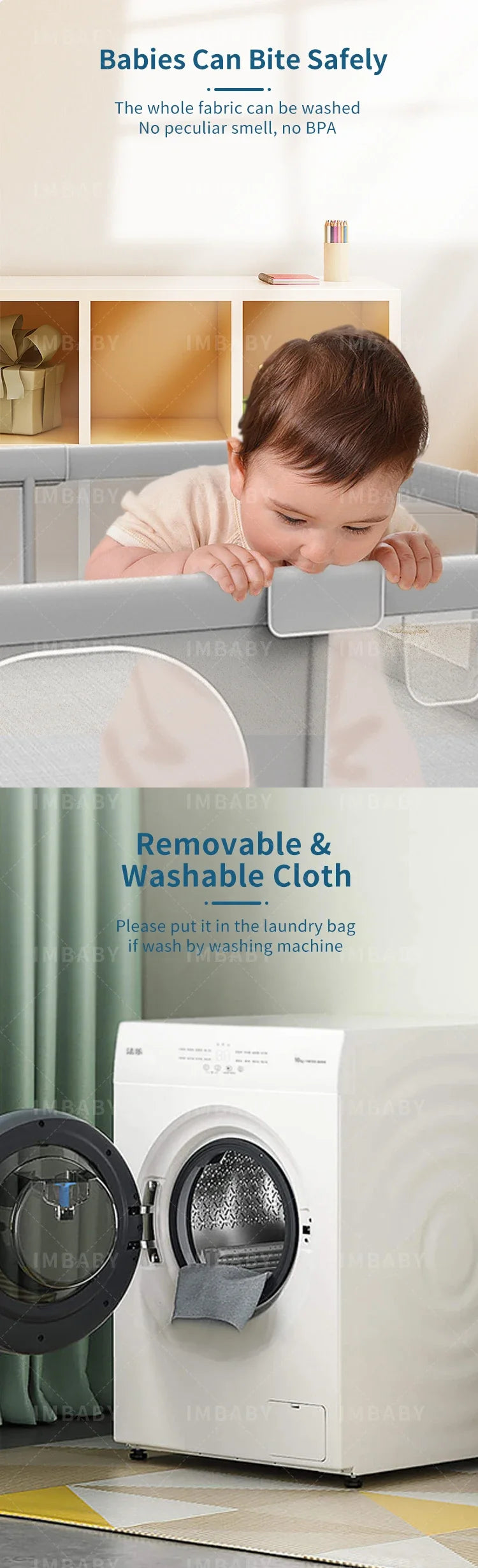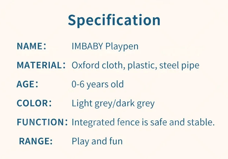 El IMBABY Baby Playpens está pensado para edades desde 0 meses hasta 6 años, adaptándose a diferentes etapas de crecimiento. Funciona como piscina seca con bolas, corralito infantil o gimnasio de juegos, siendo un accesorio versátil para el hogar. Su diseño unisex y moderno se integra fácilmente en cualquier ambiente, mientras que su estructura ligera permite moverlo y montarlo con facilidad.