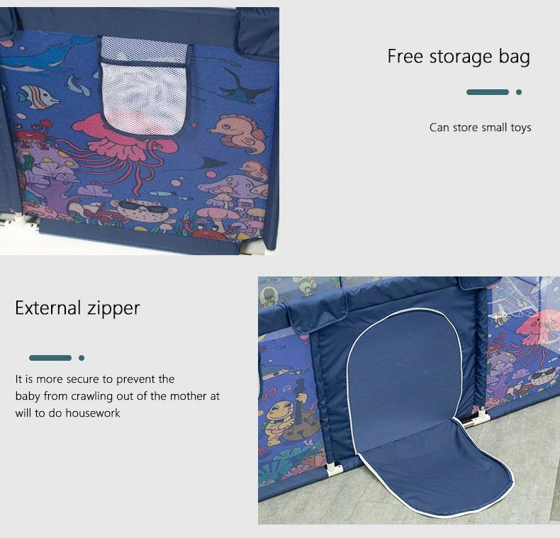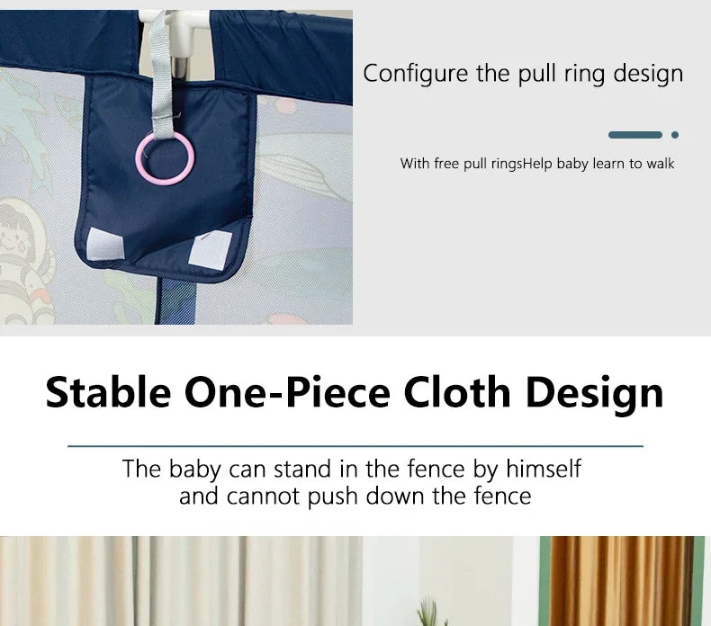 Fabricado con tubos de acero inoxidable engrosados, tela Oxford lavable y accesorios de plástico blanco, garantiza resistencia, estabilidad y durabilidad. Disponible en diferentes tamaños y estilos, con opción de valla básica o versión mejorada con protectores de esquinas, se adapta a cualquier espacio interior. Sus medidas aproximadas van desde 213 x 126 x 62 cm hasta 231 x 129 x 64 cm, ofreciendo amplitud suficiente para que los niños jueguen cómodamente.