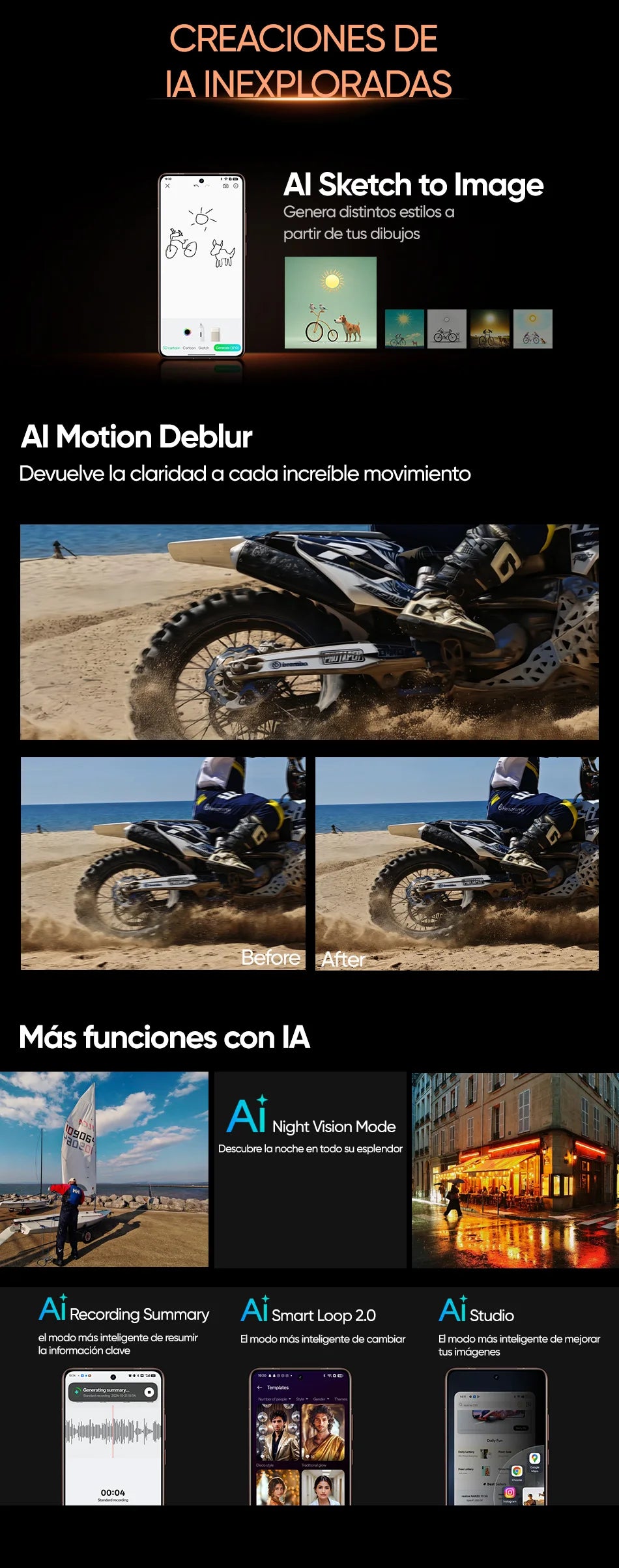 La triple cámara trasera incluye un sensor principal Sony IMX906 de 50MP con estabilización óptica, una cámara periscópica de 50MP y una ultra gran angular de 8MP, mientras que la cámara frontal Sony de 16MP ofrece selfies nítidos y naturales.